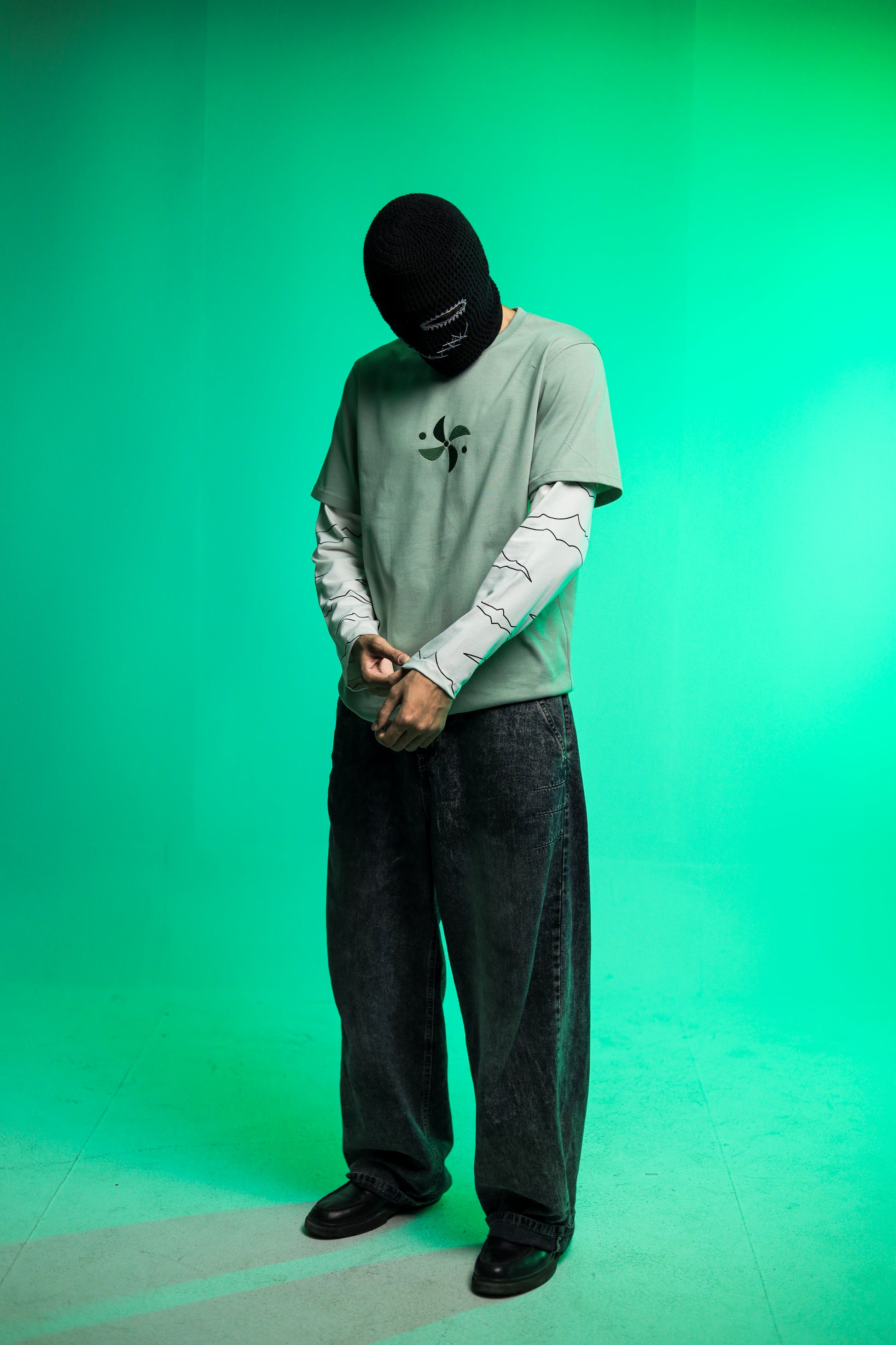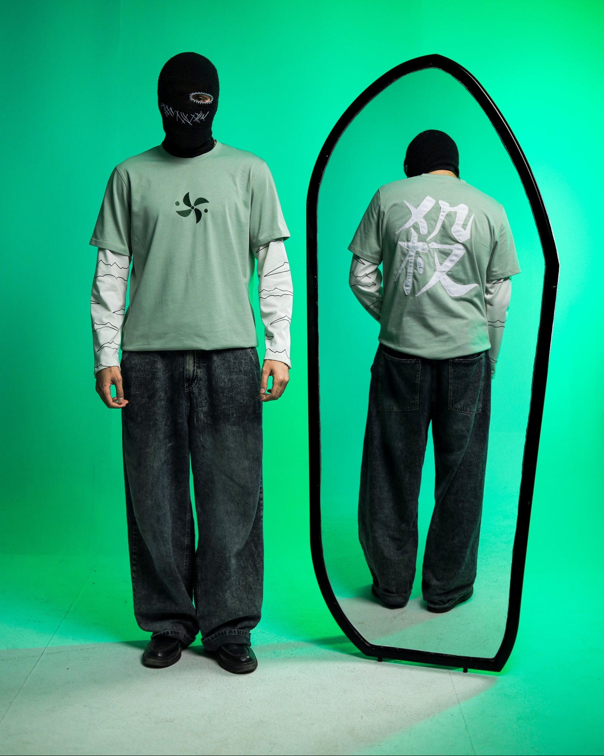 A long-sleeve piece crafted from 100% premium cotton in a clean mint-green finish, paired with contrasting off-white printed sleeves inspired by the wild energy of the Wind Hashira.